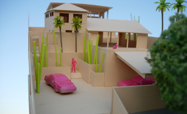 Providing an area to park and turn cars around on this hillside lot dovetailed with a master bedroom addition further up the hill.